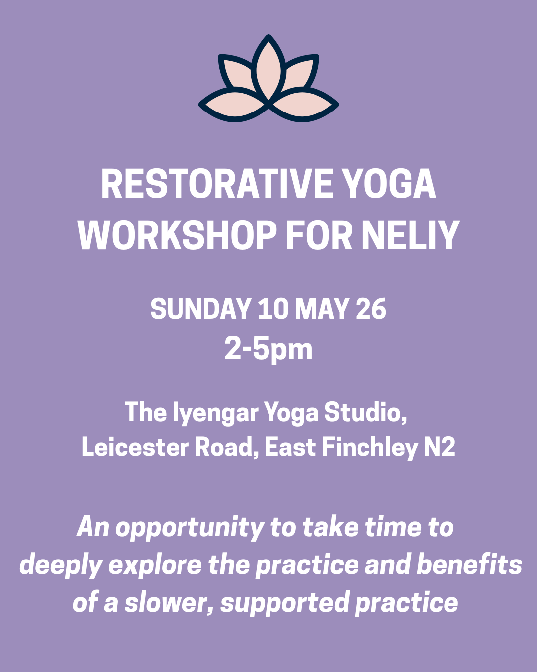 I am so thrilled to be teaching a 3 hour workshop for NELIY at the wonderful Iyengar Yoga Studio in East Finchley. We will be exploring the power of restorative yoga and pranayama – yogic breathing. This longer format gives us a chance to really explore the postures, use all the props for some wonderfully supported poses and get deeply into the effects of a longer pranayama session.